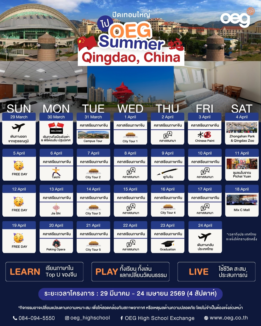 เหมาะสำหรับ : นักเรียนที่อยากพัฒนาภาษาจีนในสภาพแวดล้อมจริง และได้ทัศนศึกษาในสถานที่ท่องเที่ยวขึ้นชื่อของเมือง Qingdao