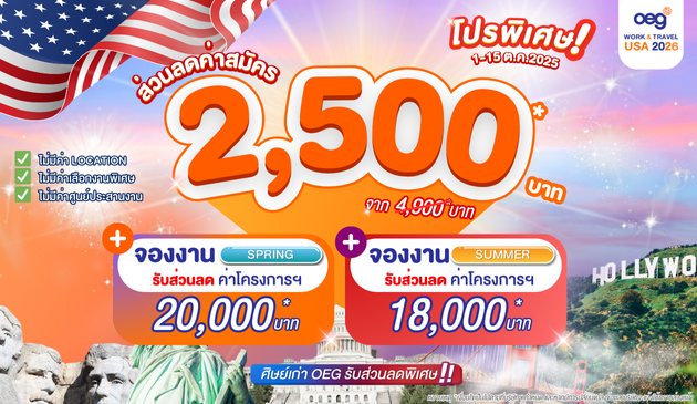 ตำแหน่งงาน (Position) ขึ้นอยู่กับทักษะภาษาอังกฤษ และคุณสมบัติที่แต่ละสถานที่ทำงานต้องการ ดูข้อมูลสถานที่ทำงาน OEG Work and Travel USA ได้ที่เมนูงาน (ด้านบน)